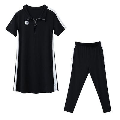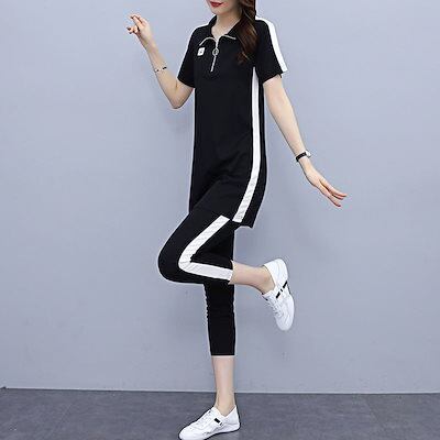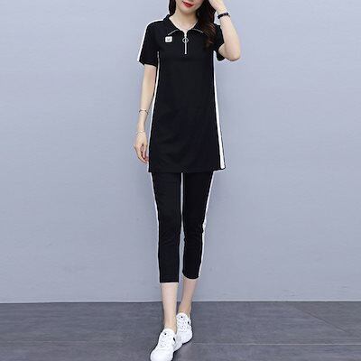 涼しく楽ちんセットアップ レディース 夏 韓国 ポロシャツ半袖ミディアムTシャツ九分パンツゆったり2着 ルームウェア セットアップ スウェット上下セット スーツ