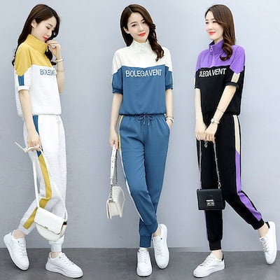 涼しく楽ちんセットアップ レディース 夏 2024新作スポーツカジュアル2枚組パンティーセット 韓国 半袖 ルームウェア セットアップ スウェット上下セット スーツ