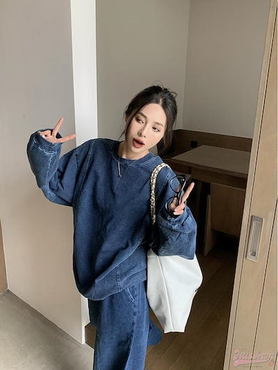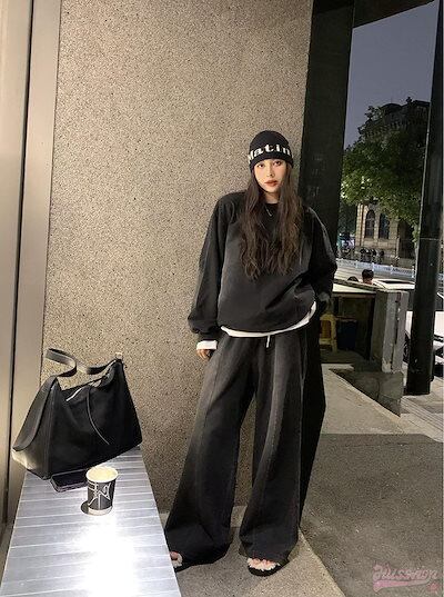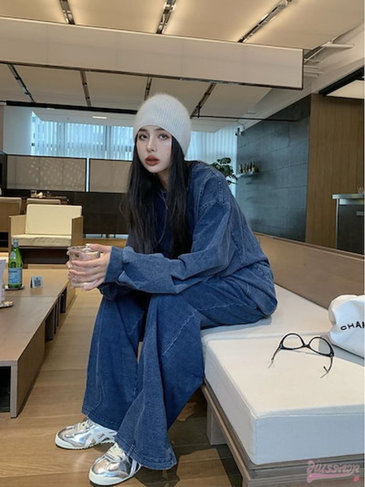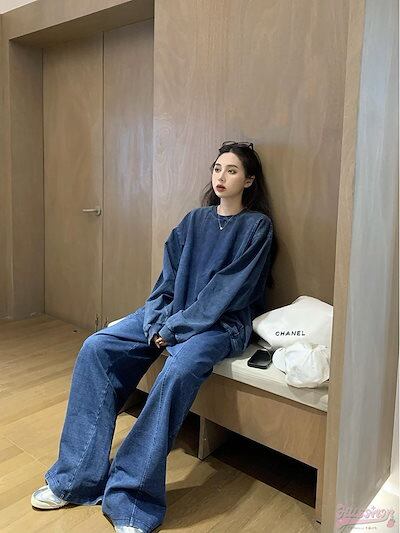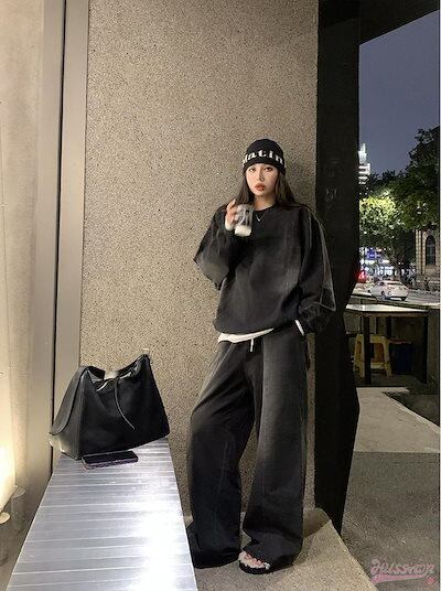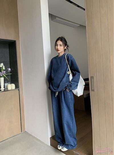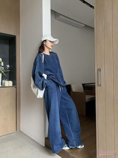 上下別売り 長袖シャツ レディース かわいいトップス ラウンドネックカジュアルパンツボトムスシルエット2点セット 風きれいめ サイズ 秋冬スタイルゆったりファッションダブル加工カジュアル大人可愛い