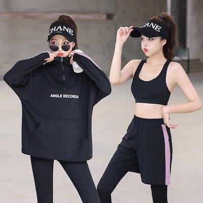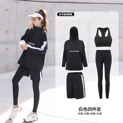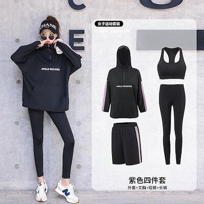 【4点セット】春夏 ヨガウェア上下セット レディース 長袖 ショーツ トップス タンクトップ レギンス 速乾 運動ズボン ホット ジャージ ヨガパンツ セットアップ