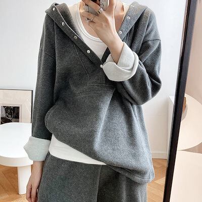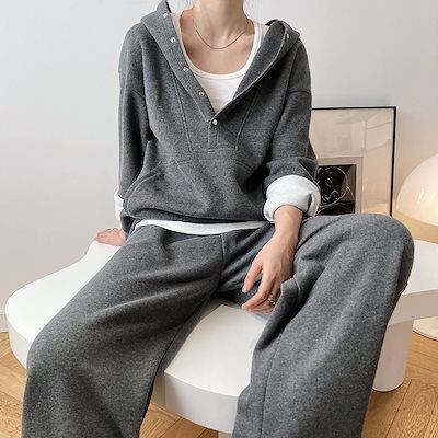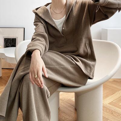 【3日出荷】2024 春 大きいサイズ服 2点セット レディースニットカジュアルファッション無地フード付きスウェット上下セット二点スポーツ 涼しく楽ちんセット パーカー 運動セット