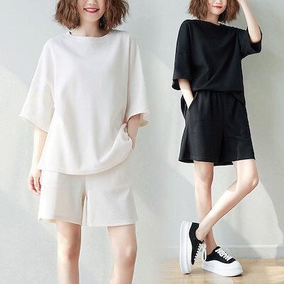夏 涼しく楽ちんセットアップ 2024 半袖セットアップ レディース 定番無地 二点セット 大きいサイズ カジュアル 快適スウェット 上下セット ジャージ 部屋着 パジャマ 上下セット ハーフパン