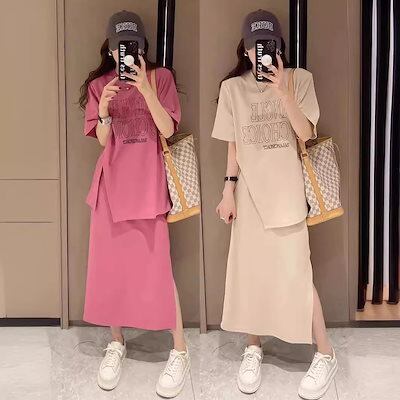 涼しく楽ちんセットアップ 2024 夏 新作 ジャージ スカート レディース 上下セット INS 流行り