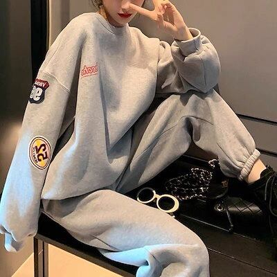 秋定番 上下2点セット スウェット スポーツウェア セットアップ ジャージ 運動スーツ ヨガウェア上下セット トレーナー 長袖tシャツ パーカー パンツ ズボン 部屋着 ルームウェア30%までに制限