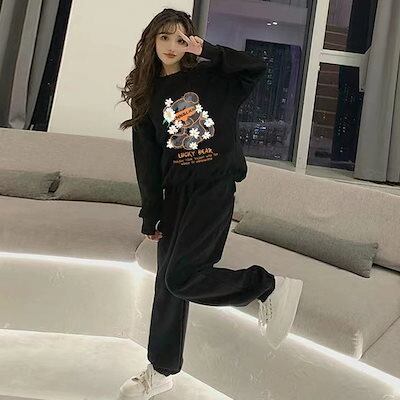 SNS超人気 上下2点セット スウェット スポーツウェア ジャージ セットアップ 運動スーツ トレーニングウェア トレーナー 長袖tシャツ パーカー パンツ ズボン 部屋着 ルームウェア30%までに制