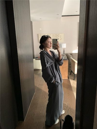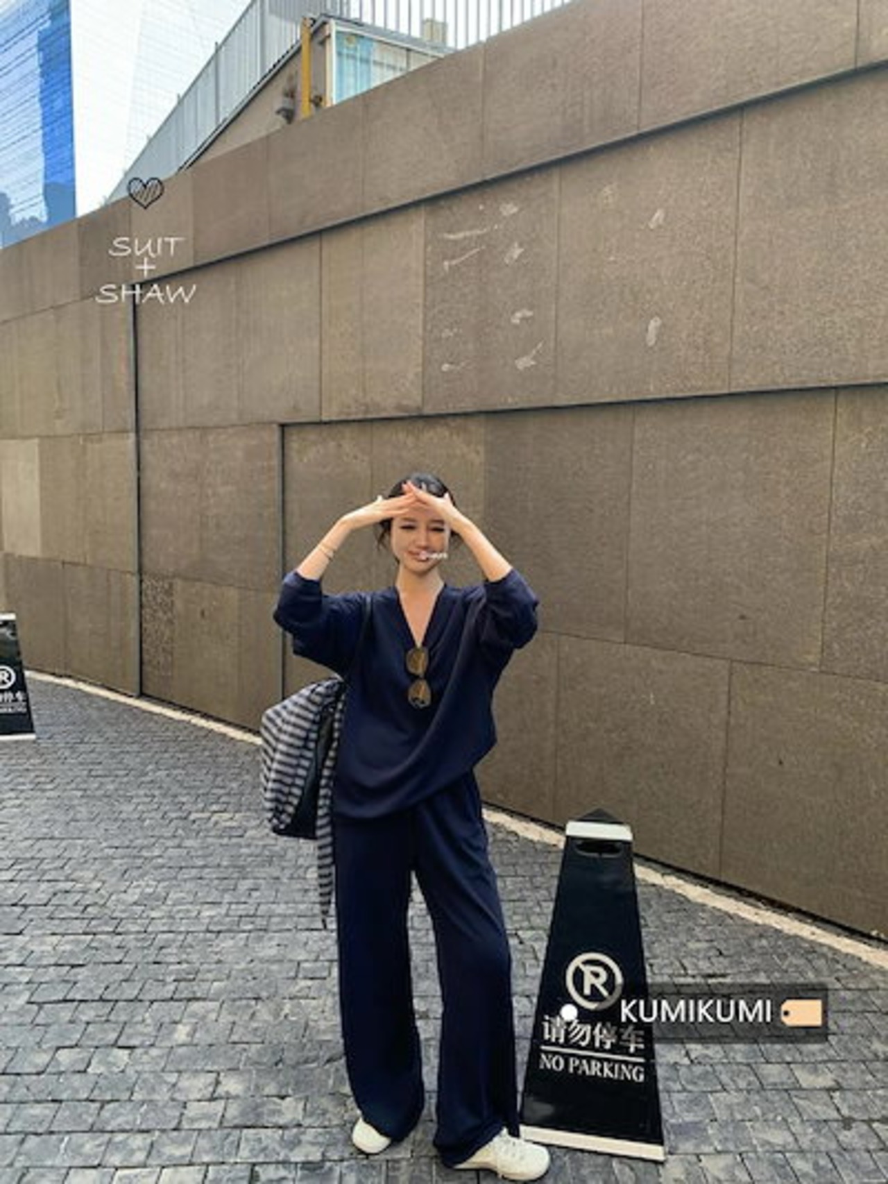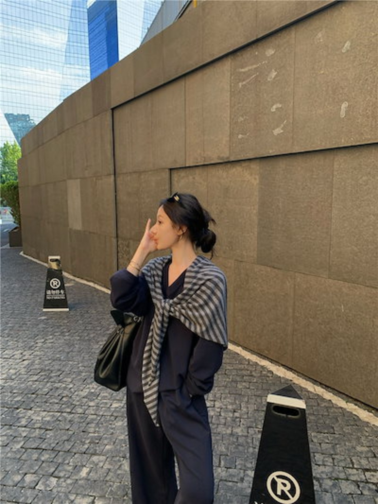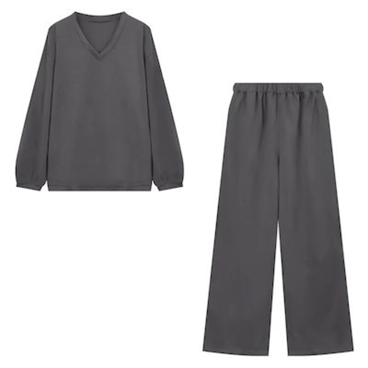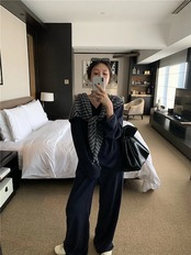 2024 秋冬 韓国 かわいい レディース 無地 2点セット普段使い長袖トップスレトロセットアップ黑白パーカーブルサイズ丈春カジュアルスポーツファッション系通学学生袖お出かけアップネックシルエット上下