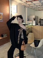 2024 秋冬 韓国 かわいい レディース 無地 普段使い長袖トップスレトロ上下セットアップ黑白パーカーブルサイズ丈春カジュアルスポーツファッション系通学学生袖お出かけアップシルエットトラック羽織り