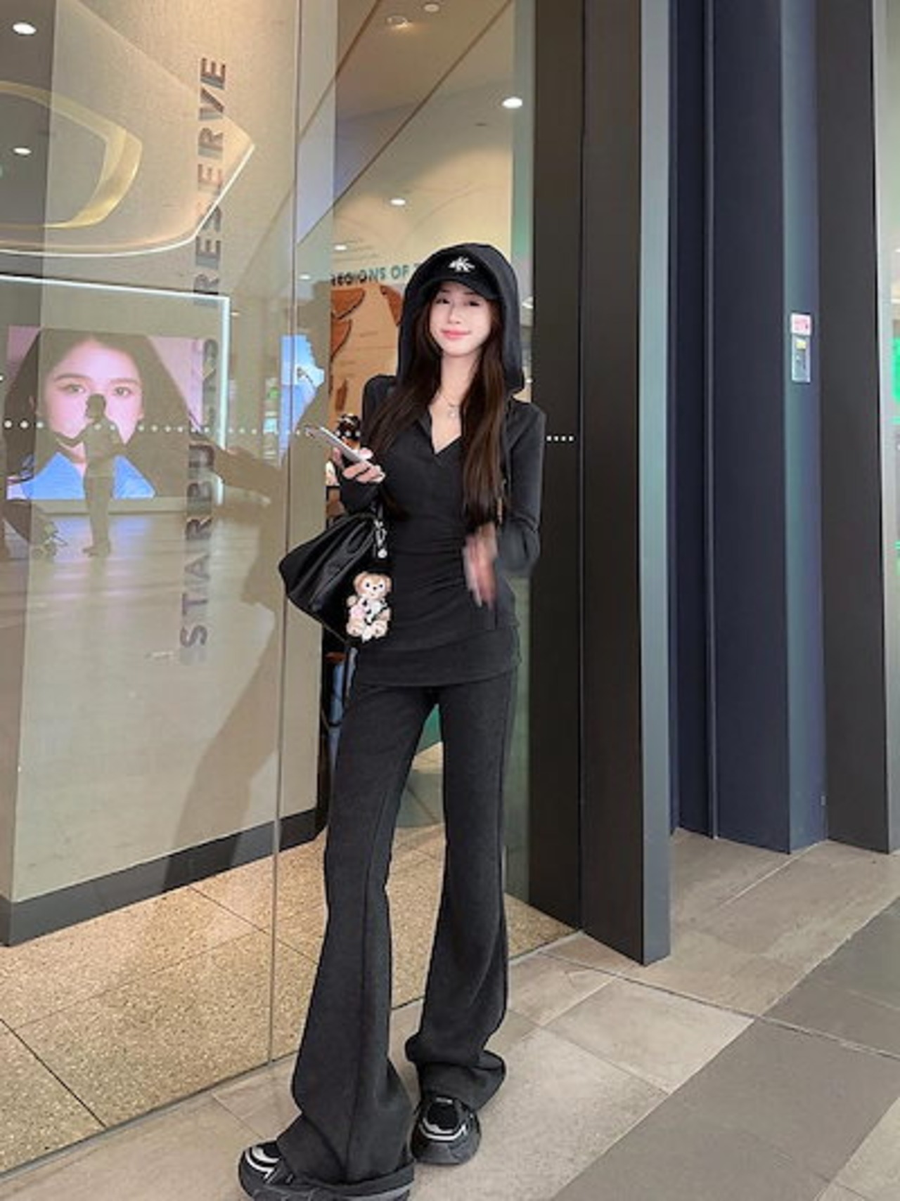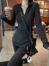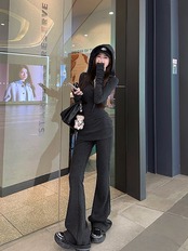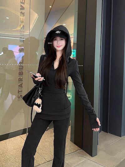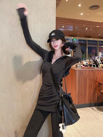 2024 秋冬 韓国 かわいい レディース 無地フード付き長袖トップスレトロ上下セットアップ黑白パーカーブルサイズ丈春カジュアルスポーツファッション系通学学生袖お出かけアップシルエットトラック羽織り