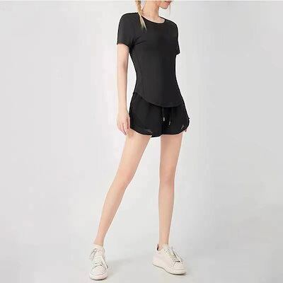 ヨガスーツ レディース 夏 薄手 速乾 半袖 フィットネス Tシャツ ゆったり カジュアル ランニング スポーツ ショートパンツおしゃれヨガウェアセット