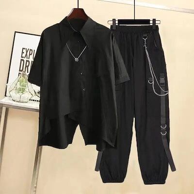 セットアップ 地雷系 男女兼用 韓 メンズファッション 長袖シャツ+パンツ スポーツウェア レディース 大きいサイズ 2点セットスウェット