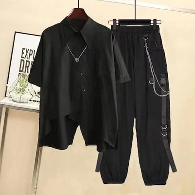 涼しく楽ちんセットアップ 地雷系 男女兼用 韓国メンズファッション 長袖シャツ+パンツ スポーツウェア レディース 大きいサイズ 2点セットスウェット