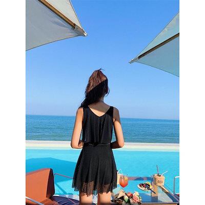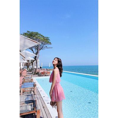 水着 レディース ワンピース水着 体型カバー サロベット オールインワン 胸パッド付き オシャレ 着痩せ スイムウェア 無地 ママ 温泉 旅行 韓国風
