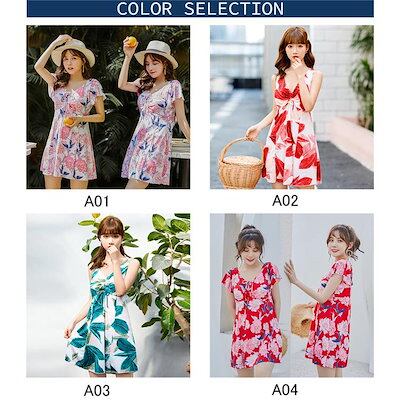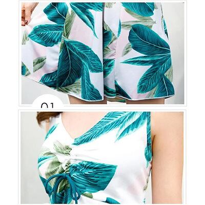 レディース水着 ママ水着 レディース 体型カバー 絵柄 水着セット 体系カバー セパレート UVカット パンツ 海 大きいサイズ ワンピース フレア