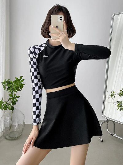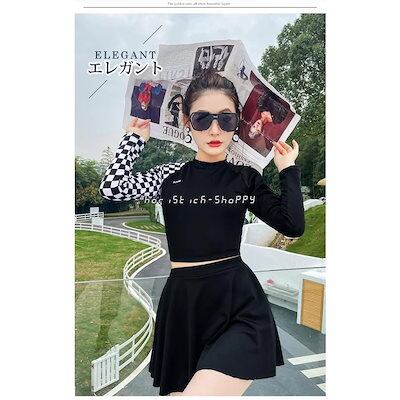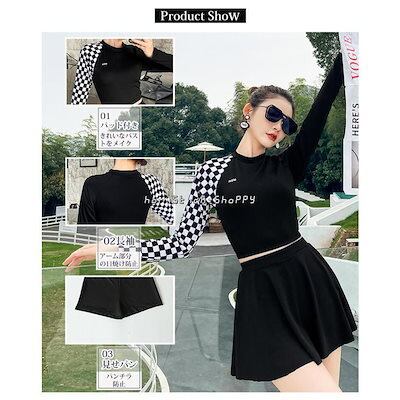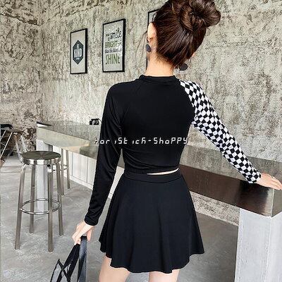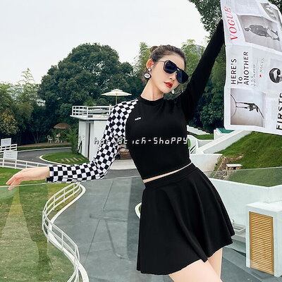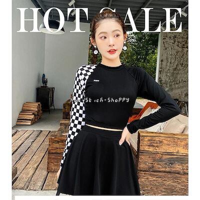 水着 レデイース 体型カバー 長袖 日焼け止め 露出控えめ 2点セット スカート スイミング セパレート式 上下セット オトナ女子 細見え