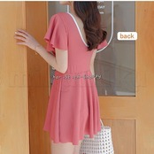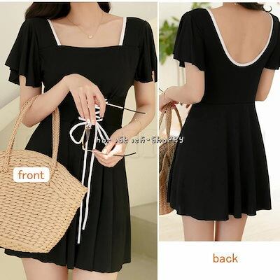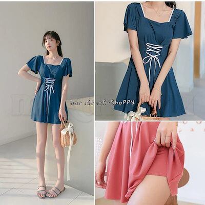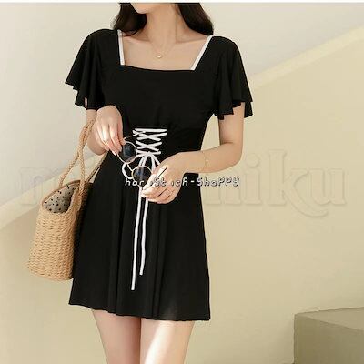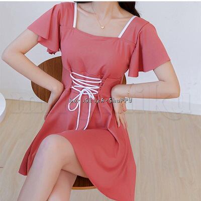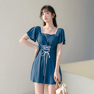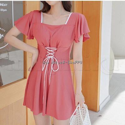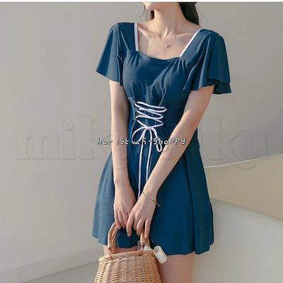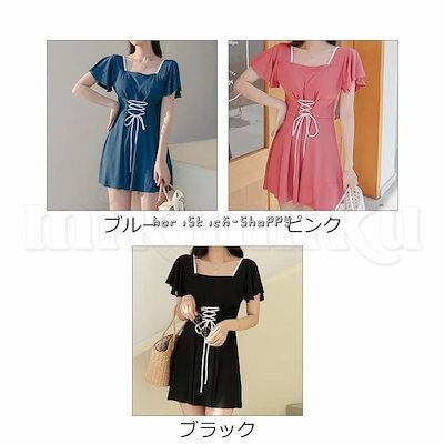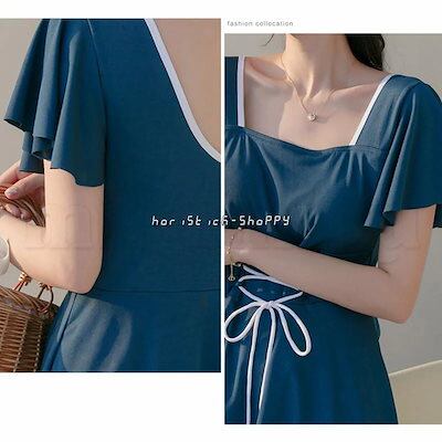 水着 レディース ワンピース 半袖 体型カバー フレア袖 パッド付き ノーワイヤ シンプル 20代 30代 40代 50代 着痩せ きれいめ おしゃれ