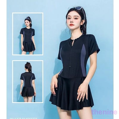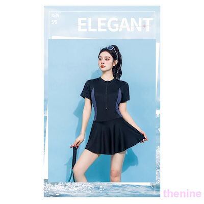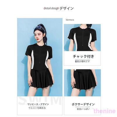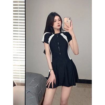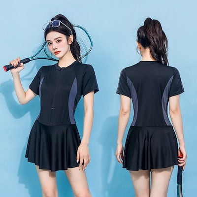 ワンピース 水着 レディース 体型カバー フィットネス ワンピース オールインワン 韓国 大きいサイズ 2colors 半袖 ピンク ブラック グレー 大人 ママ水着 かわ