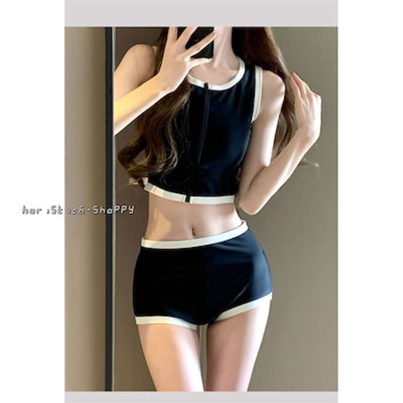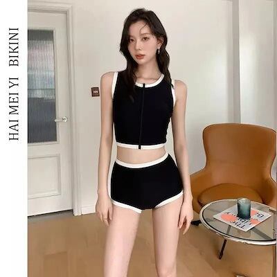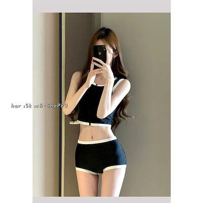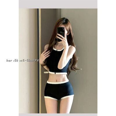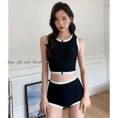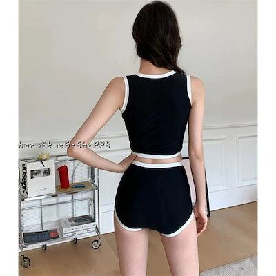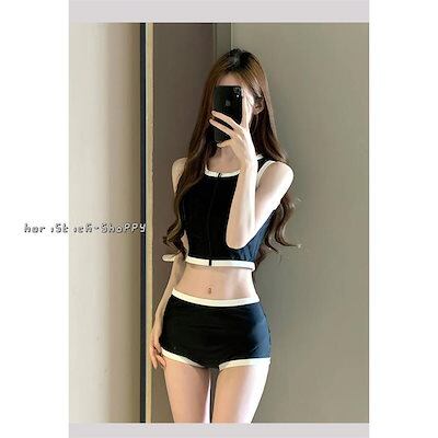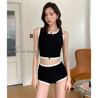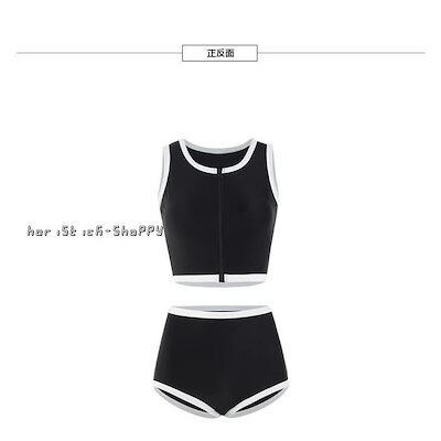フィットネス水着 レディース セパレート 体型カバーママ水着 おしゃれ かわいい 女性用 上下セット 小胸 盛れる 黒 20代 30代 40代 ぽっちゃり 露出控えめ