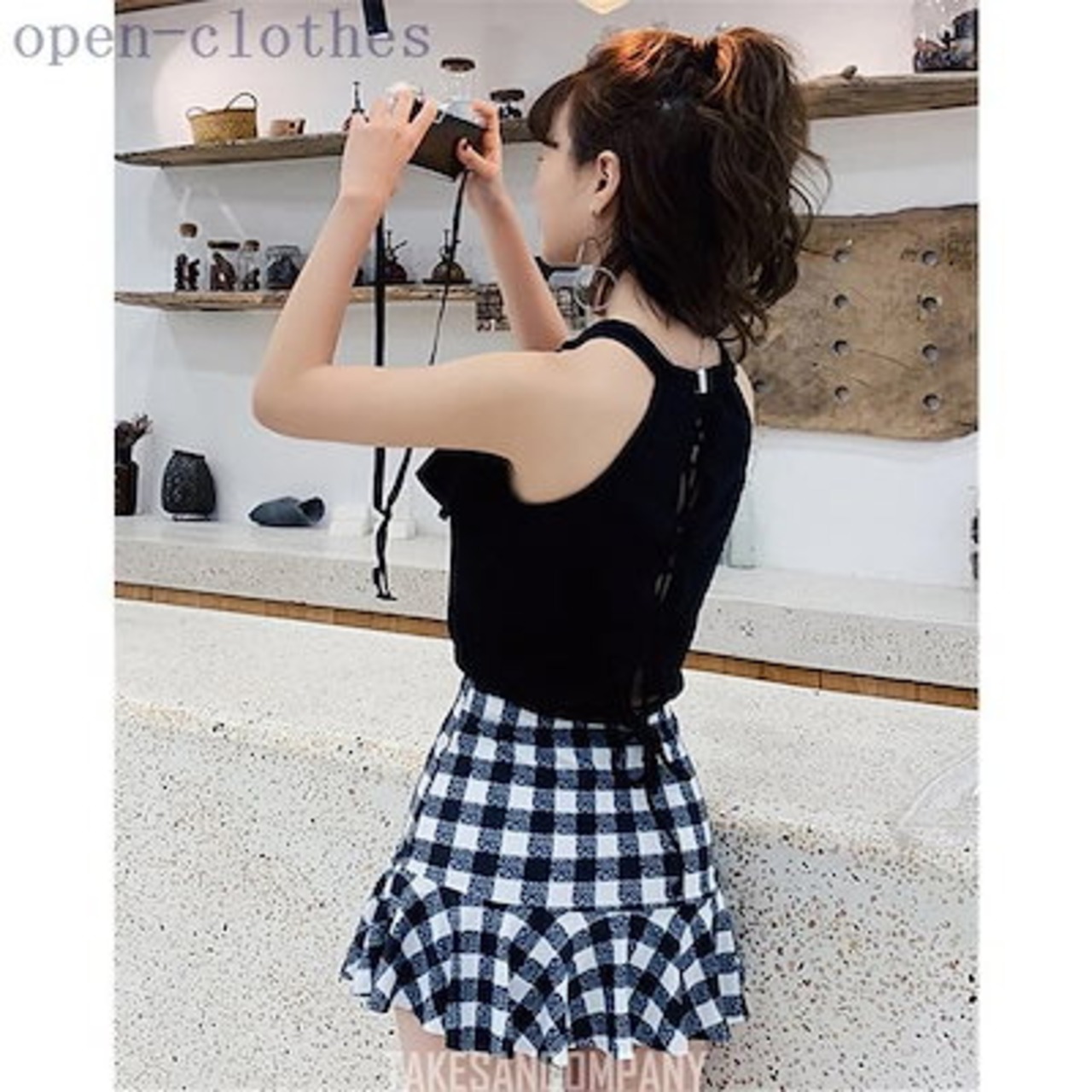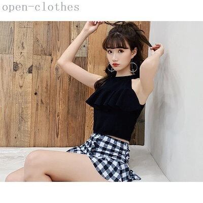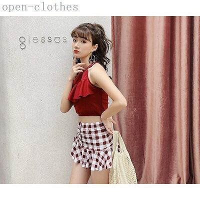 水着 レディース ビキニ 体型カバー 2点セット セバレート タンキニ スカート チェック柄 ハイウ