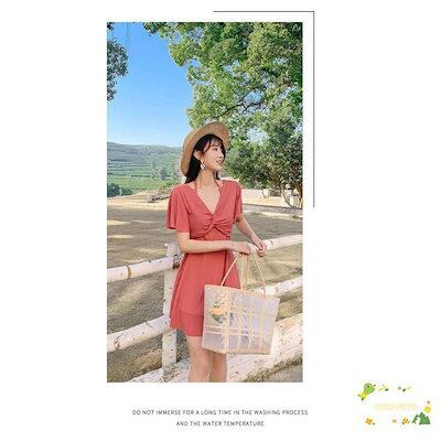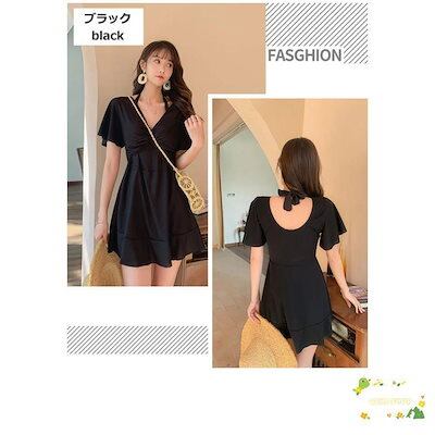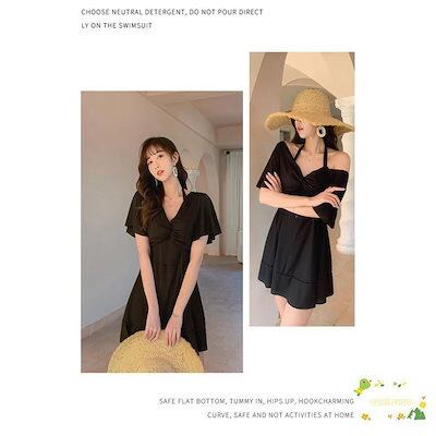 水着 レディース ワンピース ワンピースタイプ 2way 体型カバー 着痩せ 肩出し フリル 韓国風 20代 30代 40代 ママ 無地 可愛い おしゃれ