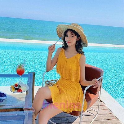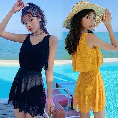 水着 レディース ワンピース 夏 小胸 日焼け防止 パッド付き 体型カバー UVカット ママ水着 海水浴 潜水 韓国風 可愛い プール 学生