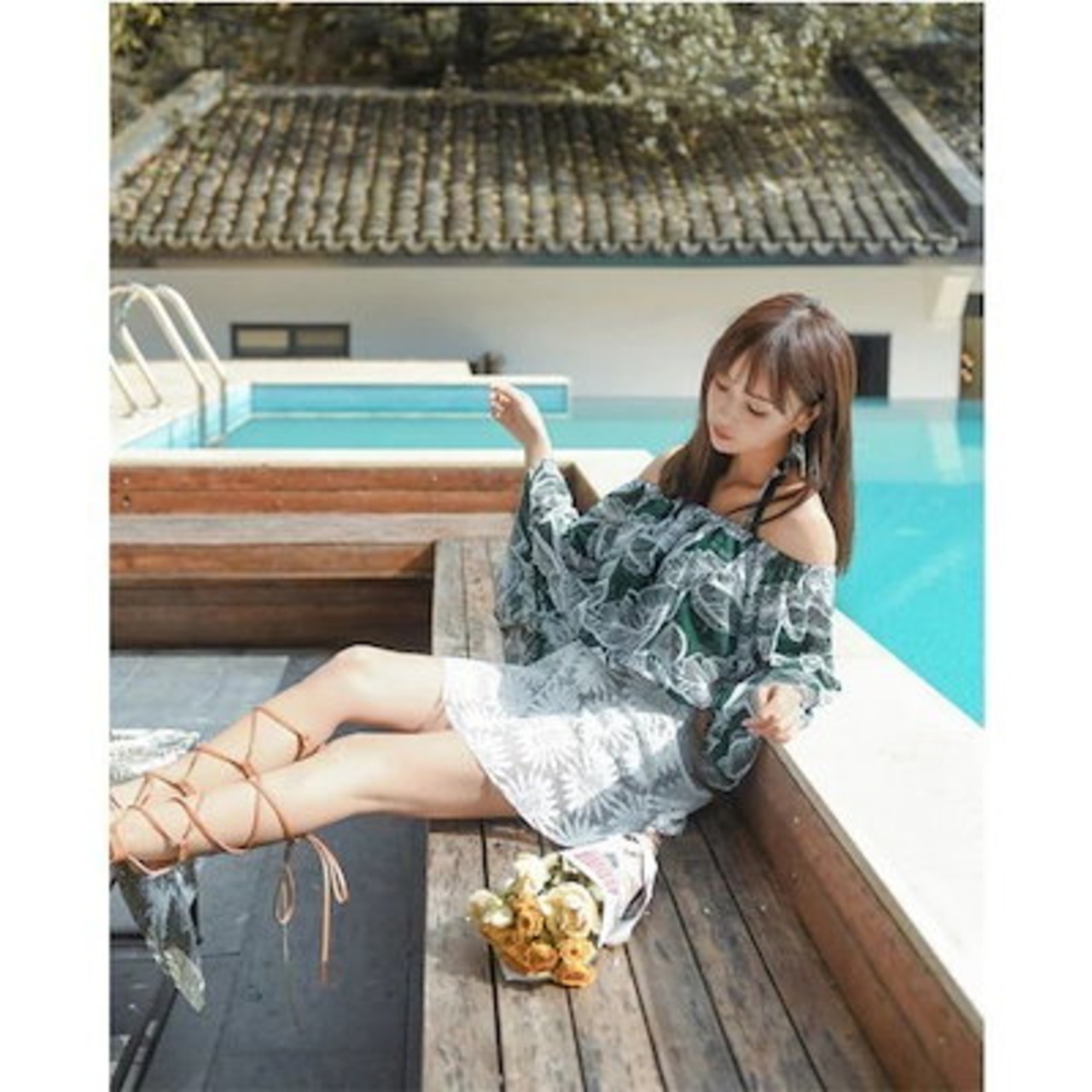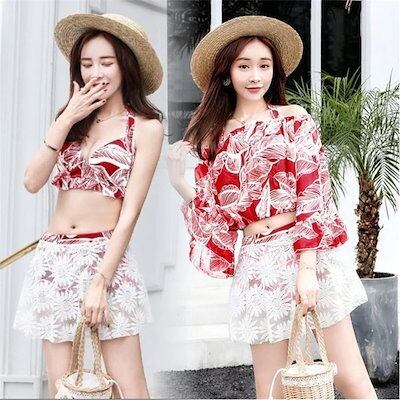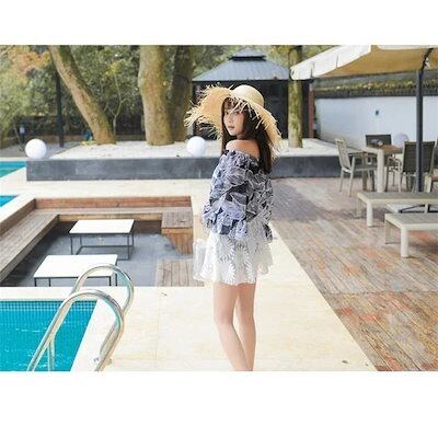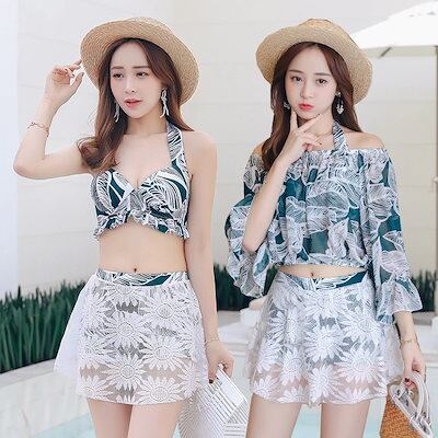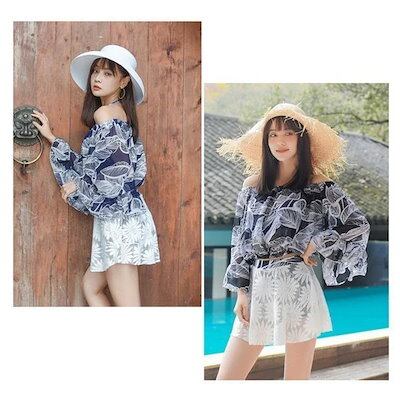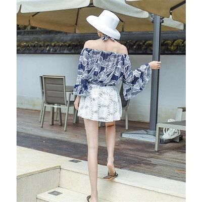 ママ水着体型カバー水着オフショルダーレディースビキニ3点セットオトナ女子ショートパンツショーパン水着