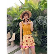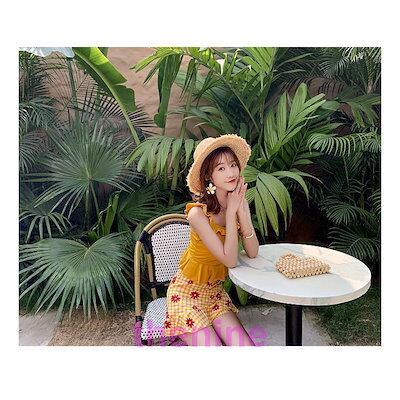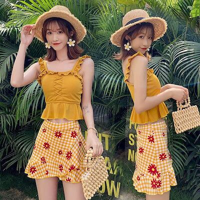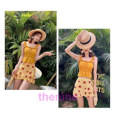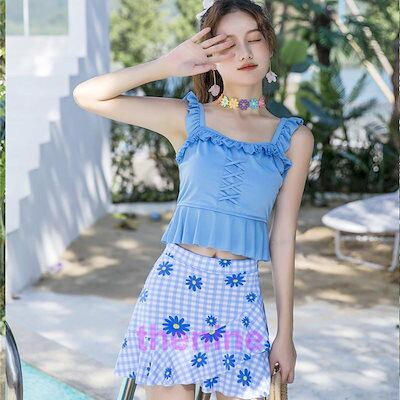 水着 タンキニ 上下セット レディース 女性 スイムウェア セパレート ノースリーブ ミニスカート フリル チェック 花柄 かわいい おしゃれ