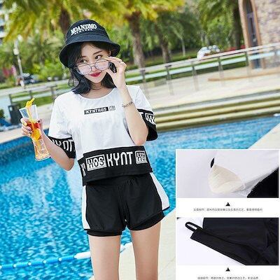 水着 レディース セパレート 3点セット 水着セット パッド付き 日焼け防止 中学生 高校生 体型カバー UVカット 海水浴 潜水 海ビーチ 韓国風 可愛い 温泉