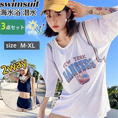 水着 レディース 3点セット セパレート 夏 日焼け防止 パッド付き 中学生 高校生 体型カバー UVカット 海水浴 潜水 海ビーチ 韓国風 可愛い