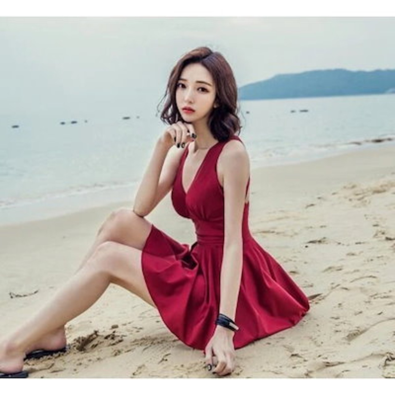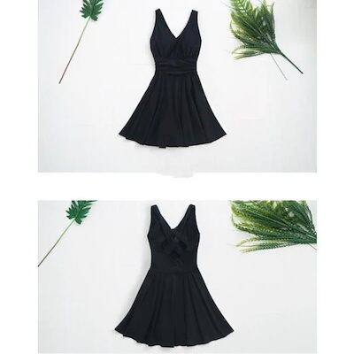 水着レディースワンピース体型カバーママ水着無地Vネックオールインワン大人大きいサイズ女性用可愛い海水