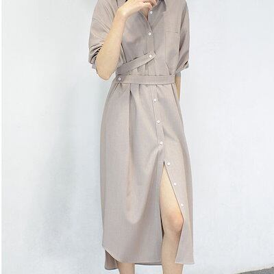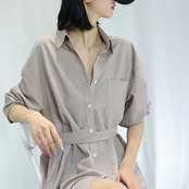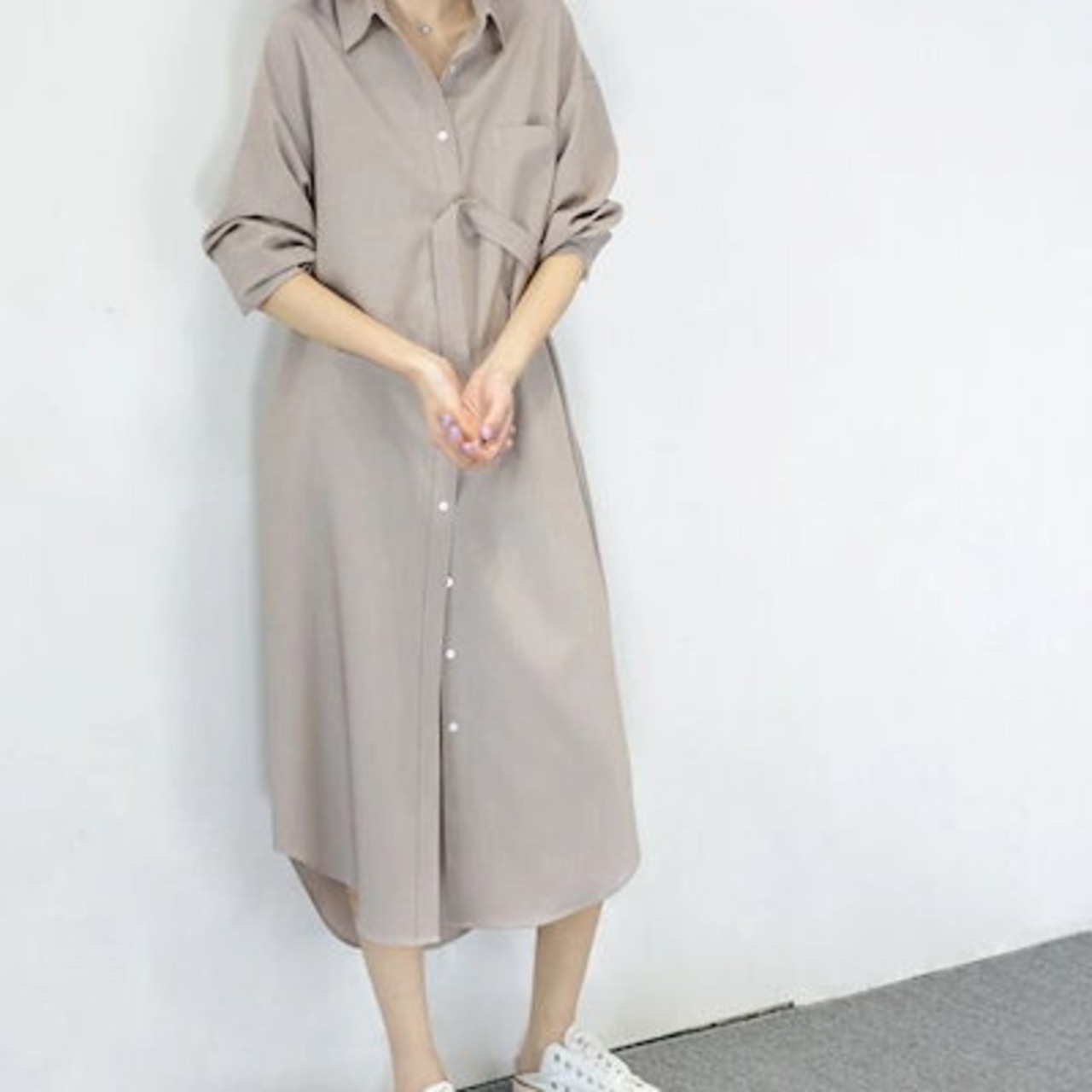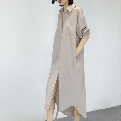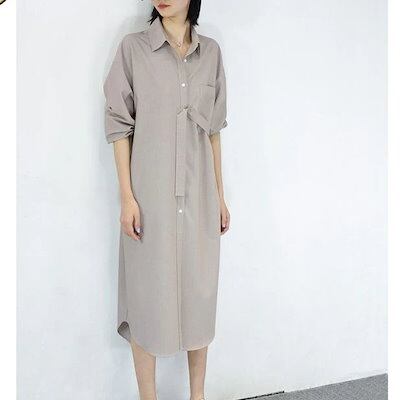 シャツワンピース 長袖 レディース 気質 ゆったり 着痩せ ロングワンピース カップ 付きインナー