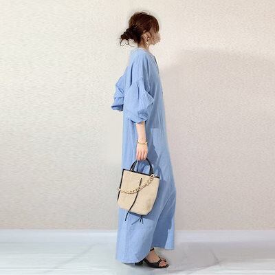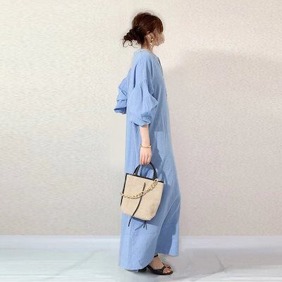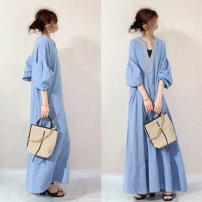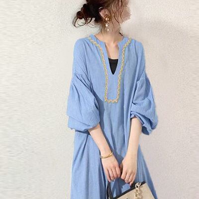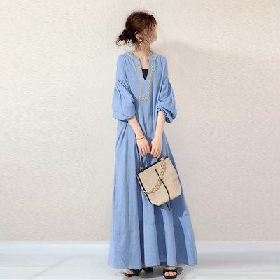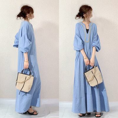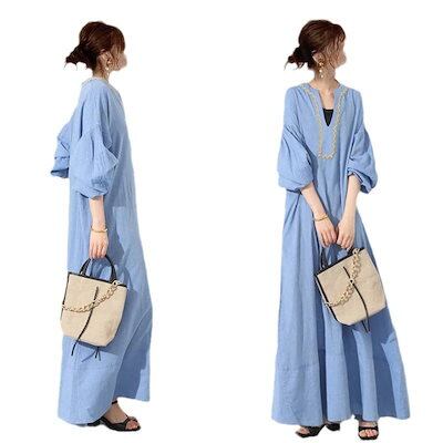 2024/春/カジュアル/無地/ランタンスリーブ/雰囲気 ワンピース カップ 付きインナー