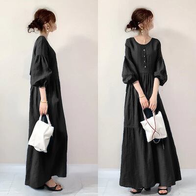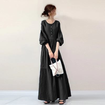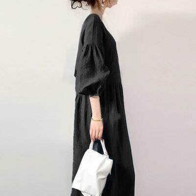 2024/夏/新作/ラウンドネック/ハーフカーディガン/ドロップショルダー/ランタン七分袖/プリーツ/スプライシングワンピース ワンピース カップ 付きインナー