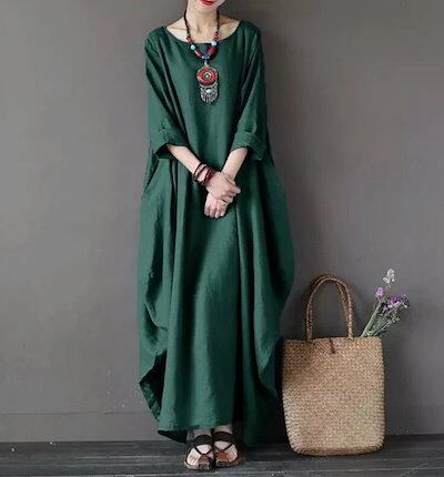 2024/春/夏/新作/ゆったり/大きいサイズ/綿麻/ロングスカート/ワンピース カップ 付きインナー