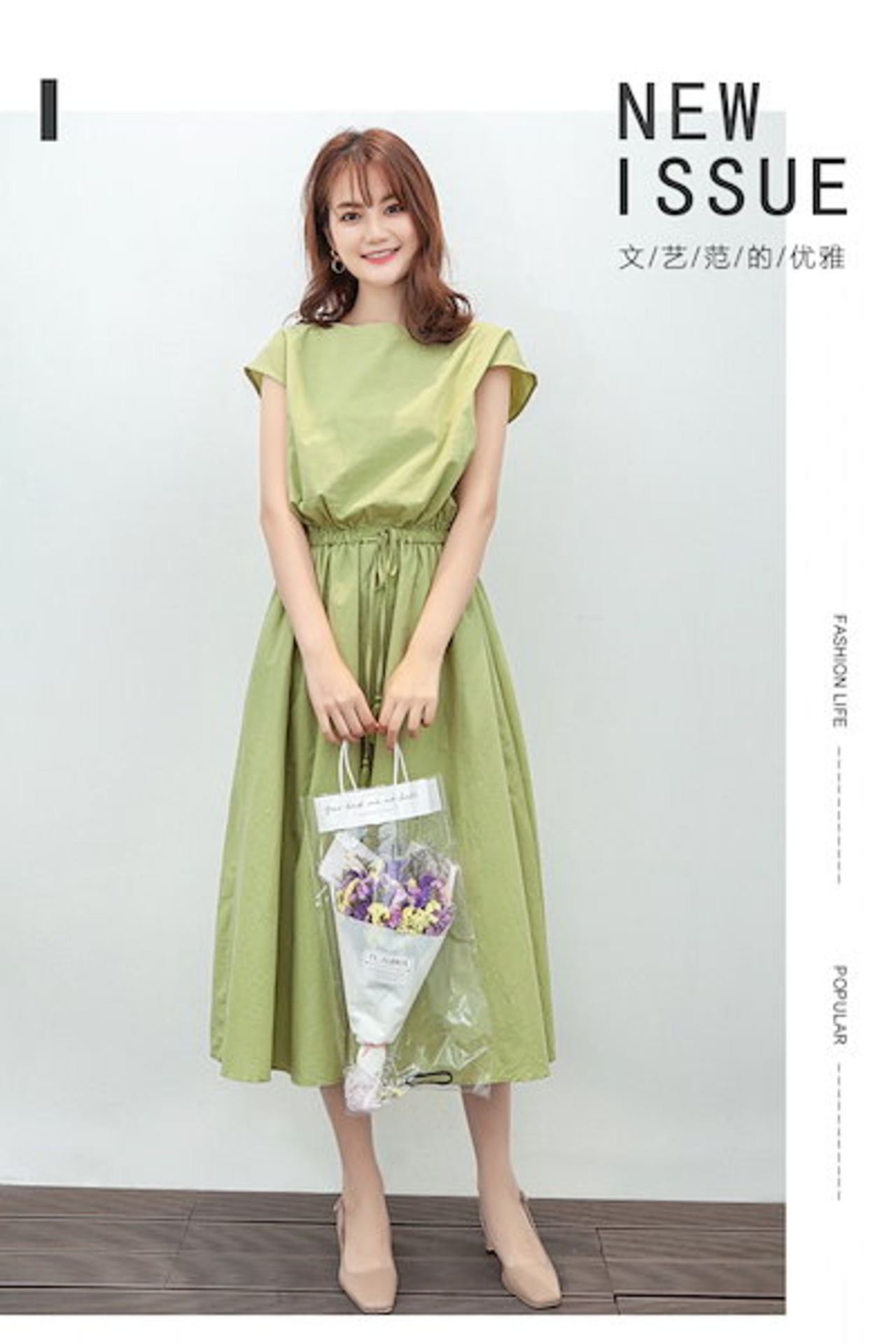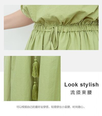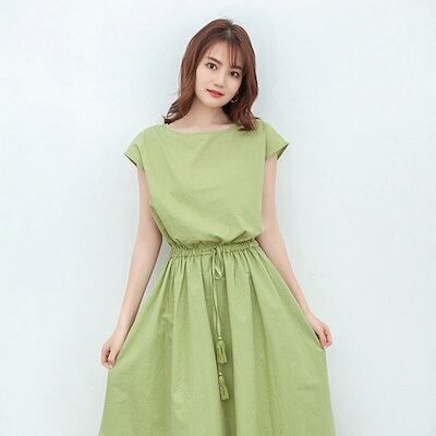 文学/ビッグスウィングワンピース/2024/夏/新作/ウエストマーク可能/ゆったり/大きいサイズ/綿麻/ワンピース カップ 付きインナー