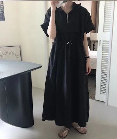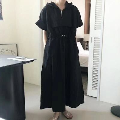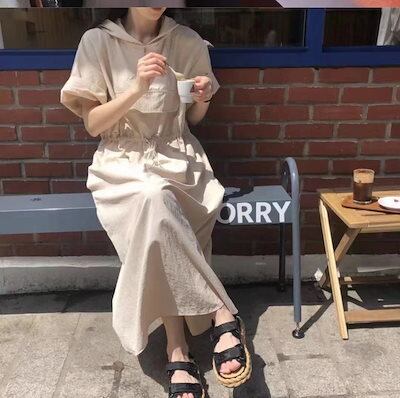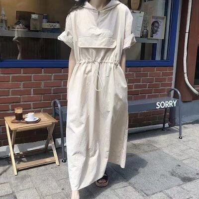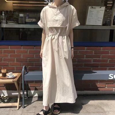 ルーズ/カジュアル/ファンシー/ドローストリング/フード付きドレス/カジュアル/ドレス/痩身/ワンピース カップ 付きインナー
