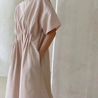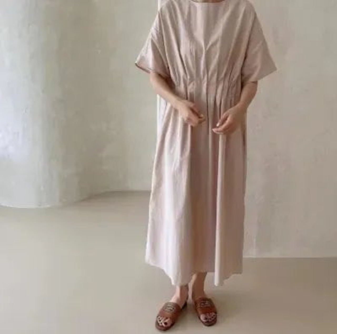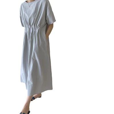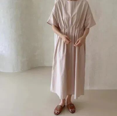 テンペラメント/ゆったり/薄手/無地/シンプル/ワンピース/2024/夏/新品/大きいサイズ/ドレス/長さ カップ 付きインナー