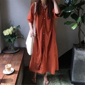 2024/夏/新作/気質/無地/ワンピース/ロング丈/Vネック/5分袖/大きいサイズ カップ 付きインナー