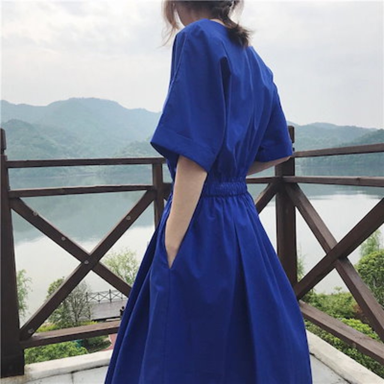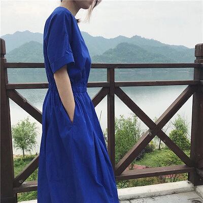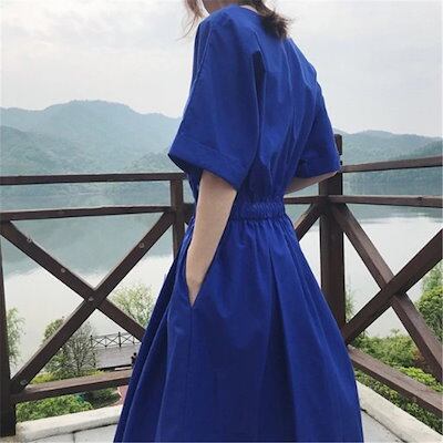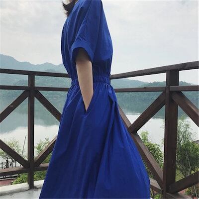 ワンピース/2024/夏/新作/レディース/Vネック/ロング/タミータックワンピース/女性用 カップ 付きインナー