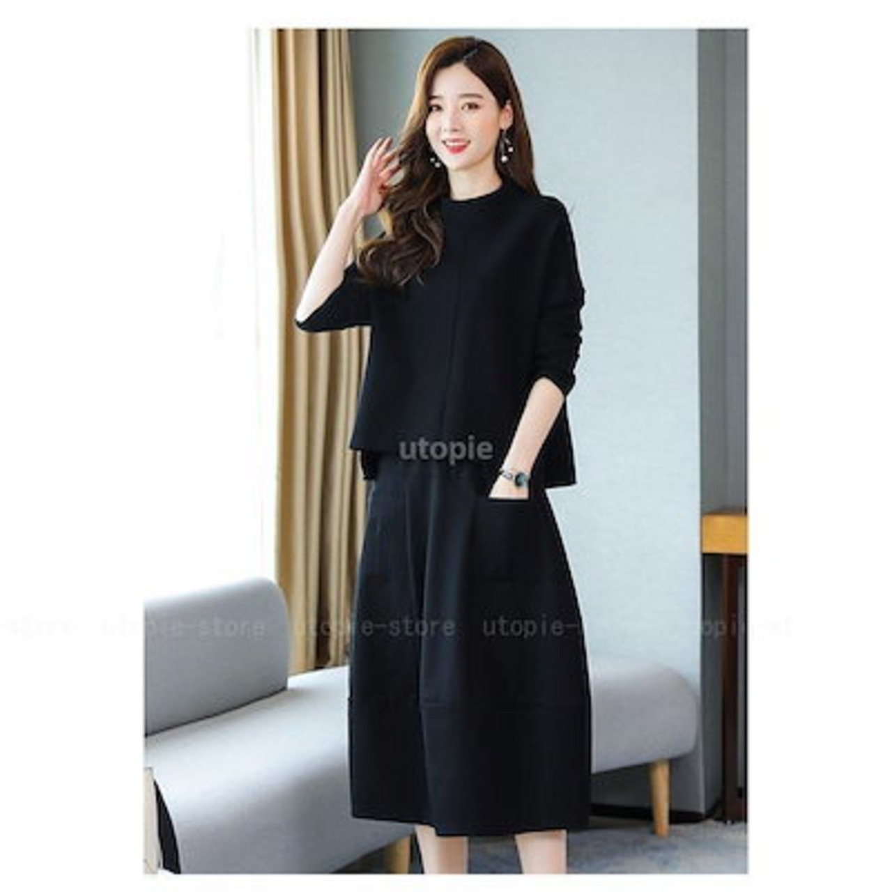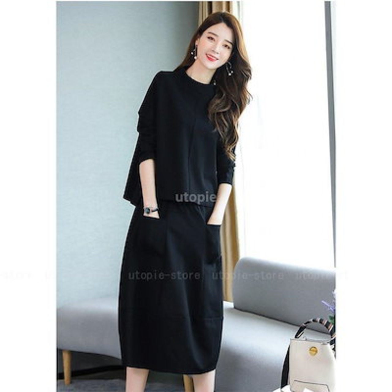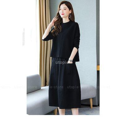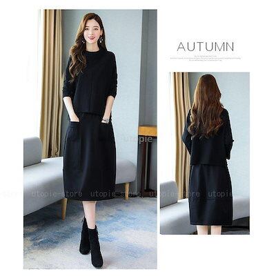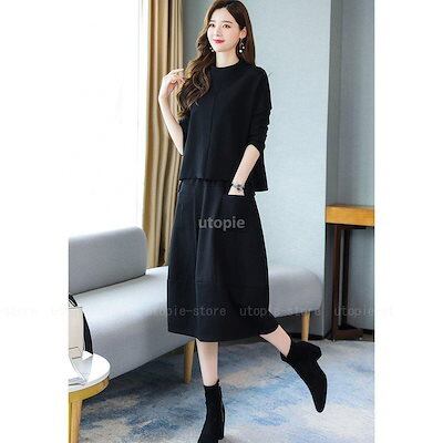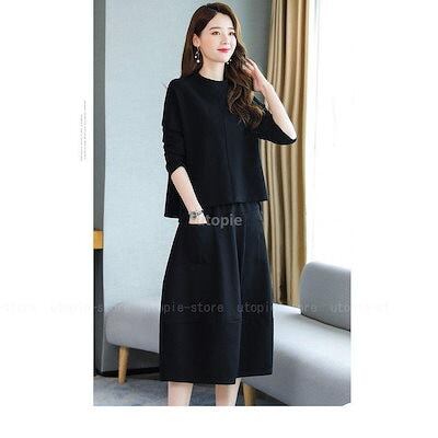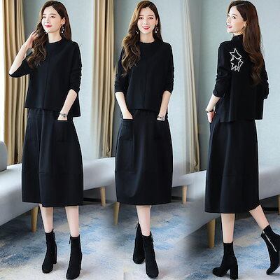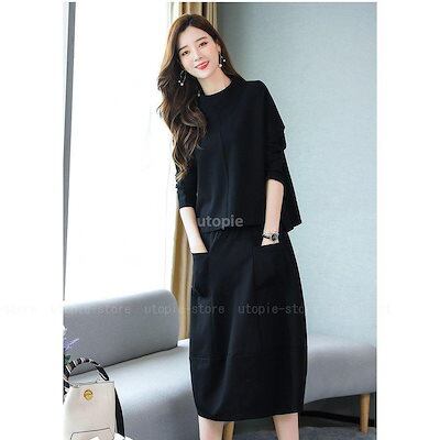 セットアップ レディース 秋 冬 カジュアル 韓国風 2点セット 上下セット 長袖 トップス スカート ロング丈 大きいサイズ おしゃれ 着痩せ 通勤