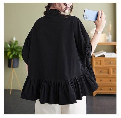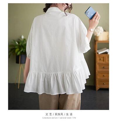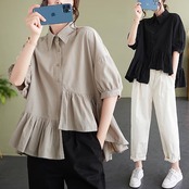 でもブラウスシワ半袖シャツ可愛いスウィートで無地トップス着痩せ大きいサイズ不規則韓国キャンパス風ファットマミー長袖ブラウスブラウス