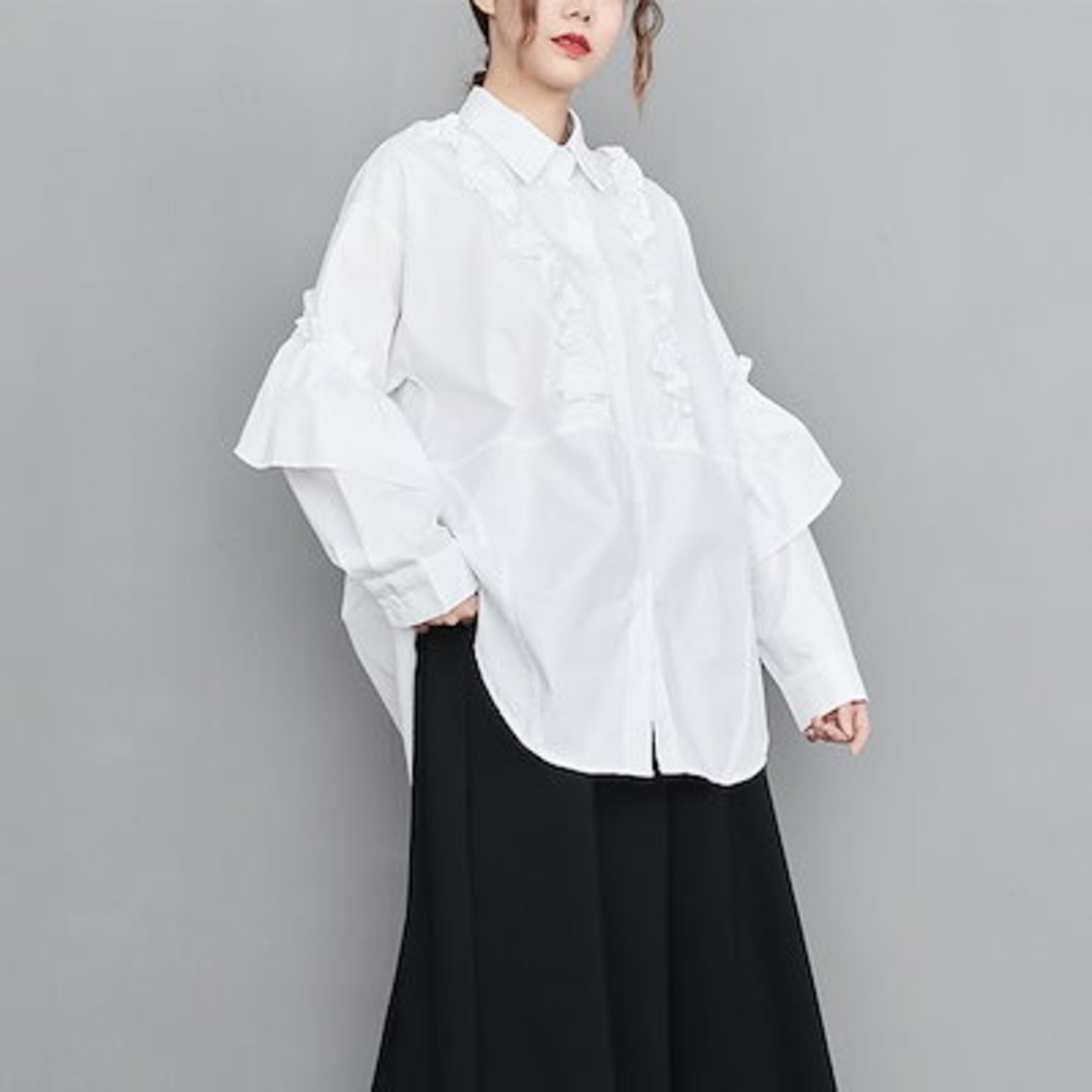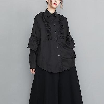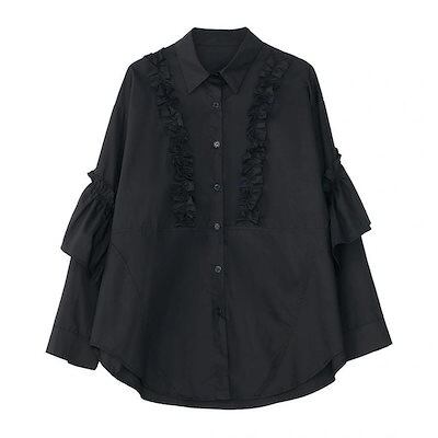 可愛いシャツ ブラウス長袖春夏新作木耳縁若見えゆとり着痩せ効果大きいサイズブラウス