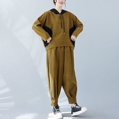 2023人気パーカー長袖トップスワイドパンツ上下二点セットアップ韓国ファッションレディース大きいサイズ春服福袋