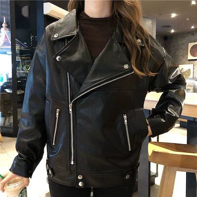 韓国ファッション秋服レディースジャケットアウター長袖トップスカーディガン皮ジャンパー黒福袋