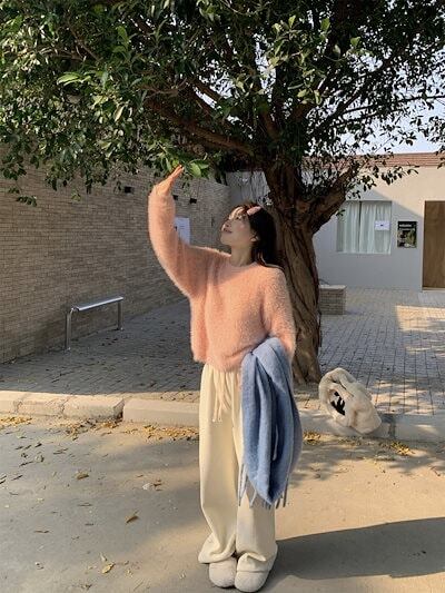 2024春夏 トップス 長袖 ニット セーター レディース ショート おしゃれ 秋冬春カラースタイルアップロンT色っぽ 女っぽスタンド ハイカジュアルきれいめV大人ファッション加工フェミニン かわいい