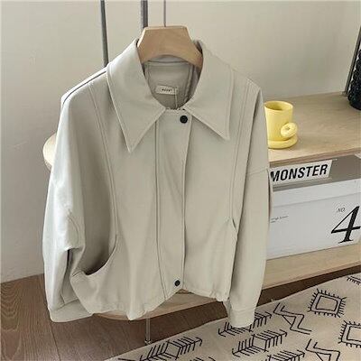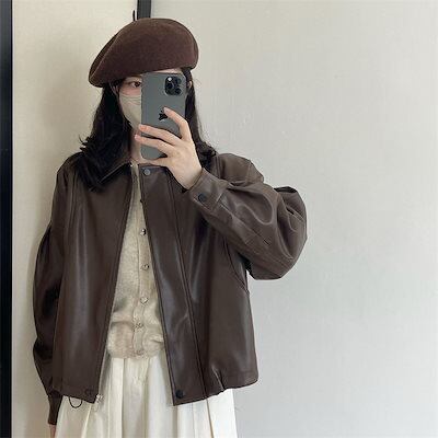 【3日以内出荷】春アウター 2024年春秋の新作日系レトロな開襟シングルブレストレザージャケットPU皮ジャケット長袖コートレディース 韓国ファッション