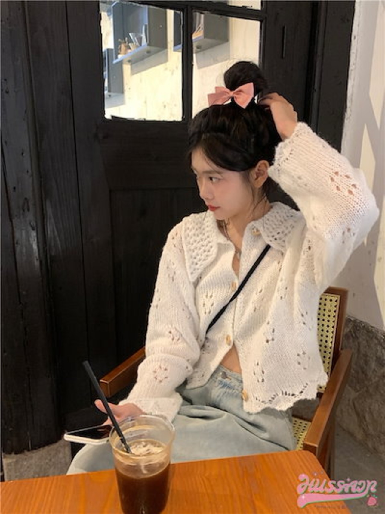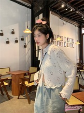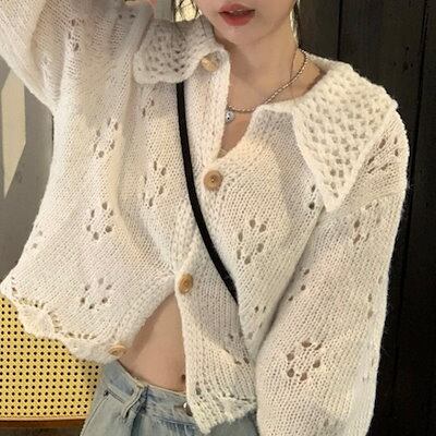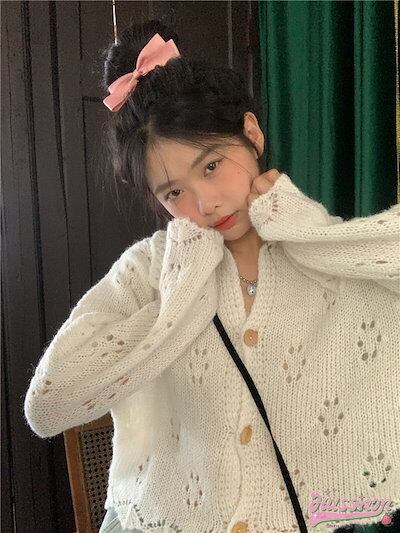2024春夏トップス ニット 二枚重ね風 重ね着風 カーディガン Vネック ボタン 長袖 春 ゆったり グリーン 緑 韓国ファッション レディース おしゃれ かわいい カジュアル お出かけ