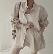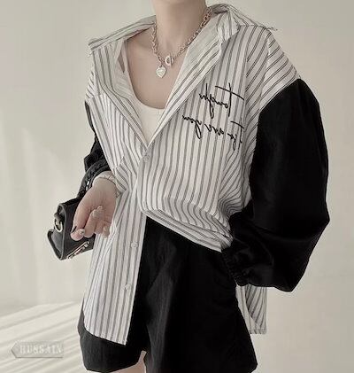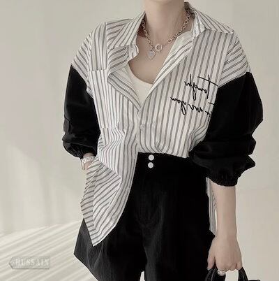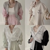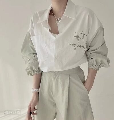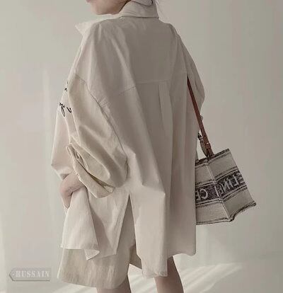 2024 春 トップス シャツ カーディガン 襟 スタンダードカラー ボタン 長袖 英語 ゆったり かわいい おしゃれ カジュアル ファッション お出かけ