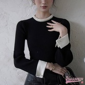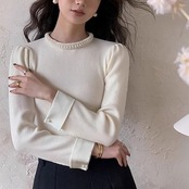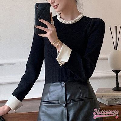2024春夏レディース トップス ニット リブニット オーバー カラー ミドル丈 無地 袖あり 長袖 大人カジュアル カジュアル 袖口折り返し エレガント 上品 シンプルデザイン