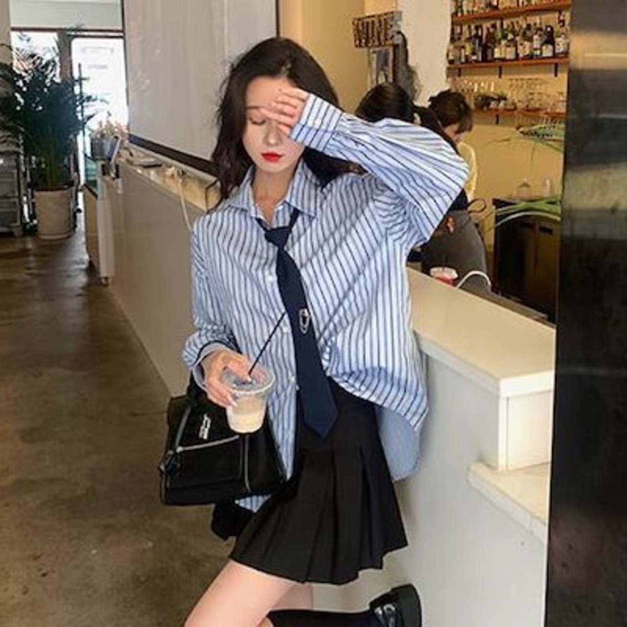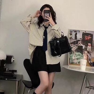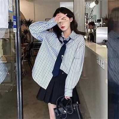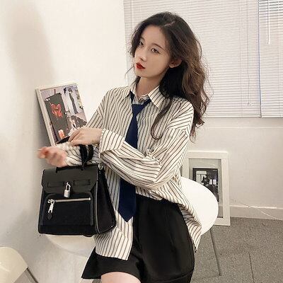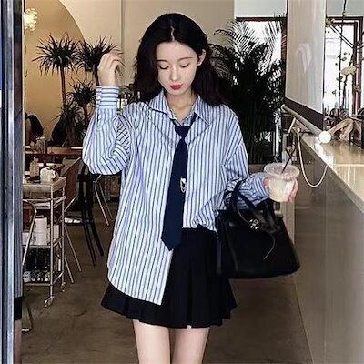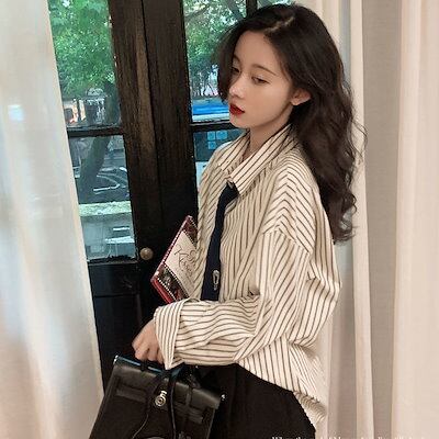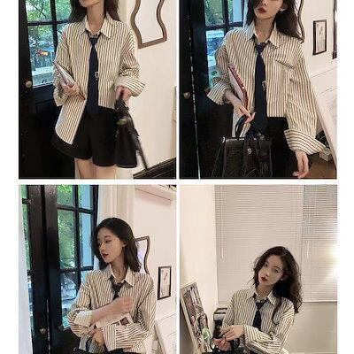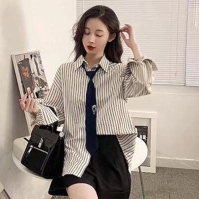でもブラウス シャツ レディース春夏 キャンパス風 インナー レディース ゆったり 長袖 シャツ ストライプ シャツブラウス シャツ レディース