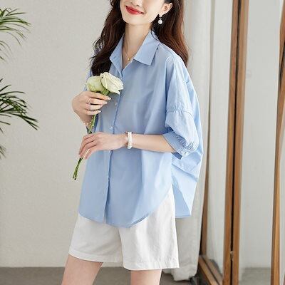 ブラウス シャツ レディース ブラウス シャツ レディース 体型カバーチュニック 綿 シャツ 中丈 vネック 韓国ファッション 大きいサイズ ブラウス シャツ レディース